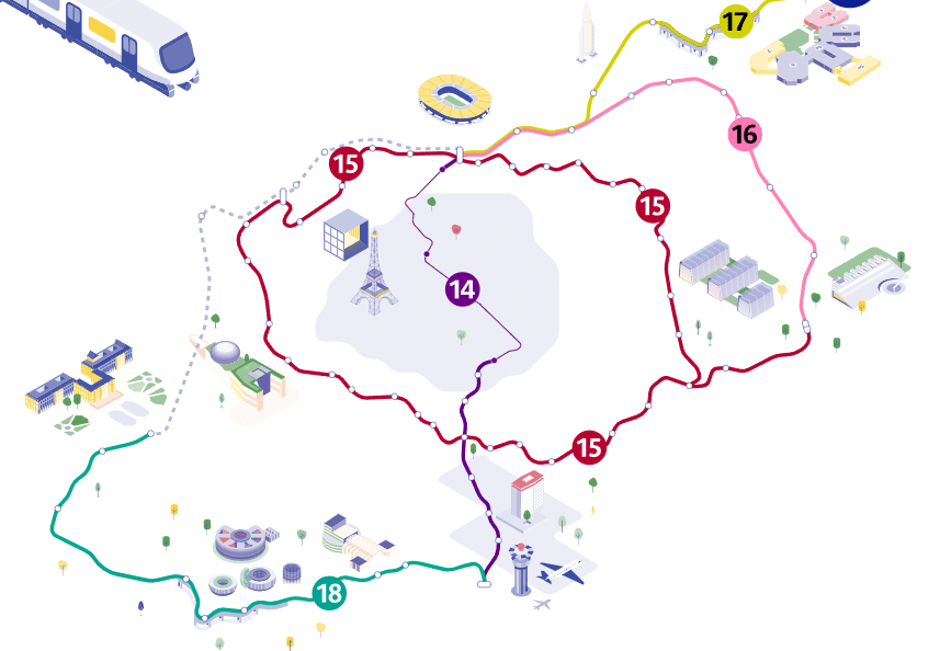 Une consultation internationale pour le Grand Paris est lancée. Les architectes du monde entier sont invités à réfléchir à l’avenir de la région, dans une suite de projets plus futuristes les uns que les autres. Les publications et expositions qui suivent permettent de vanter une métropole tournée vers le futur, autour d’un projet d’infrastructure qui reliera les grands pôles de la région, de Saclay aux aéroports, du pôle universitaire de Champ-sur-Marne à La Défense. Les habitants de la région sont alors peu consultés, tandis qu’on leur présente le projet comme une liaison ferroviaire de banlieues à banlieues, permettant de ne plus dépendre de la disposition en étoile des transports de Paris. Le projet du Grand Paris Express est ainsi un projet institutionnel et territorial : il s’agit de créer une infrastructure de transport, mais aussi un territoire unifié, composé de la « petite couronne » de l’Ile de France (la Seine-Saint-Denis, le Val-de-Marne et les Hauts-de-Seine). La métropole du Grand Paris est créée en 2013, et plusieurs communes de l’Essonne la rejoignent, ainsi que la ville d’Argenteuil dans le Val-d’Oise. La métropole est décomposée en « arrondissements » ou Établissement Publics Territoriaux devant se spécialiser dans une certaine économie ou industrie.